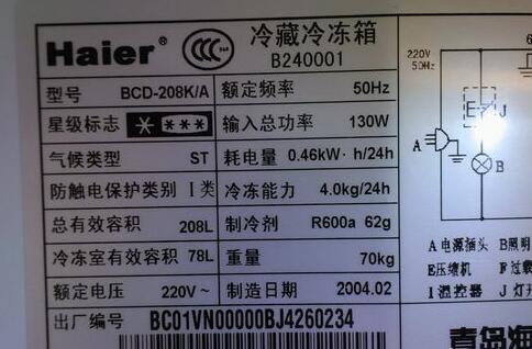 下面就以圖片中的某品牌電冰箱的銘牌作為事例,進行簡單的解析。